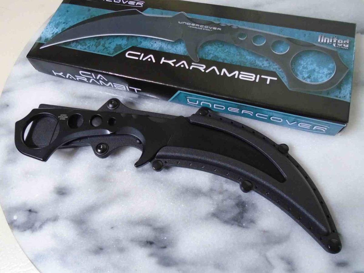 UC3631 United Cutlery Undercover CIA Stinger III Karambit – Lame Fixe Lame Acier 3Cr13 Black Oxide Manche Acier - Housse nylon - Livraison Gratuite