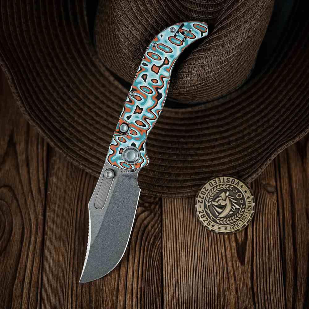 Inspiré de la légendaire navaja espagnole, le Vosteed Naga A3908 revisite ce classique avec une touche moderne et artistique. Sa lame clip point modifiée en acier S35VN de 8,8 cm (3.47") offre une excellente rétention de coupe, une résistance à la corrosion et une précision remarquable.